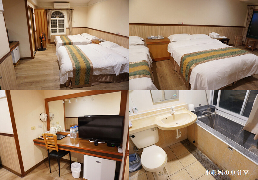 我訂的是木屋雙床,小木屋裡該有的設備都有....浴缸、陽台、液晶電視、免費礦泉水,也有備品,洗髮精、吹風機、棉花棒、牙刷、室內拖鞋、香皂...
