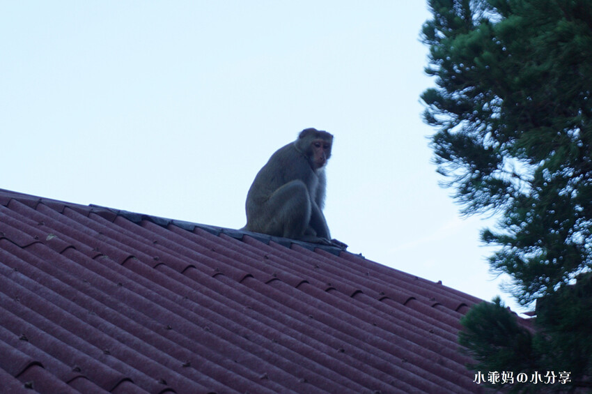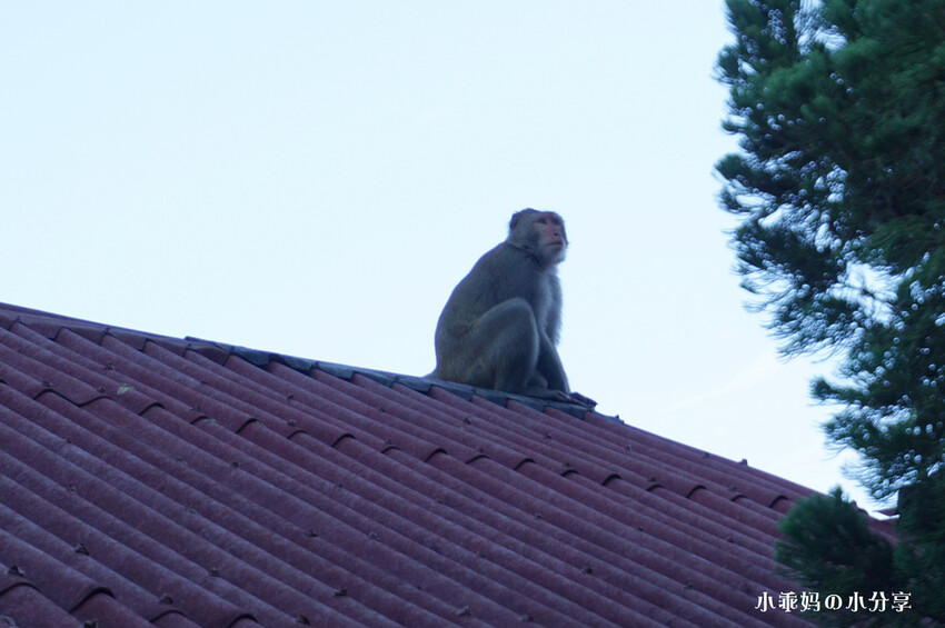 隔天早上起床居然發現我們屋頂有幾隻台灣彌猴,坐在屋頂上超可愛啦~~~好幾個遊客都在拍牠們,哈哈哈~~~