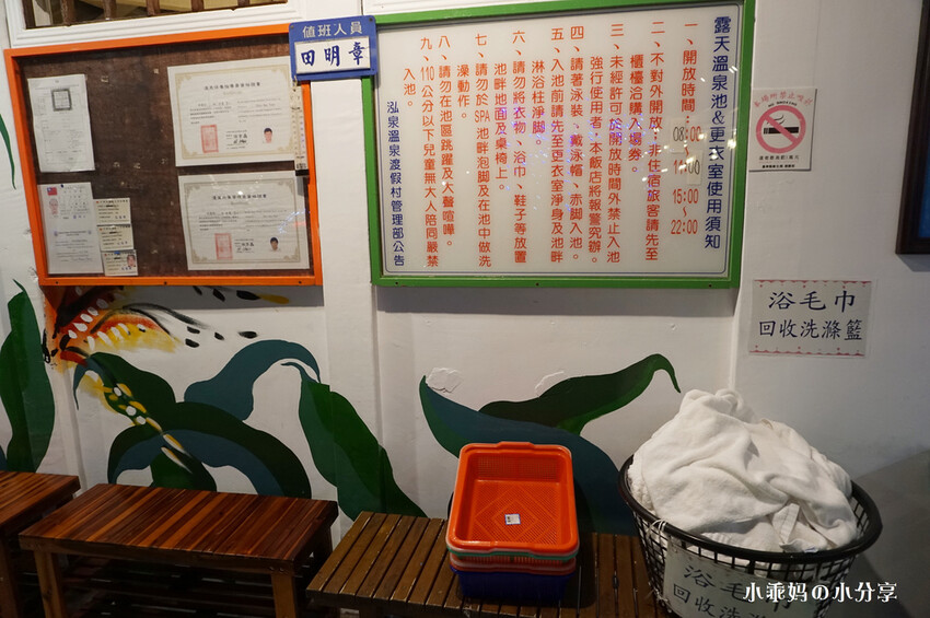 ▼這裡有露天溫泉池&更衣室使用須知,開放時間8:00~11:00及15:00~22:00