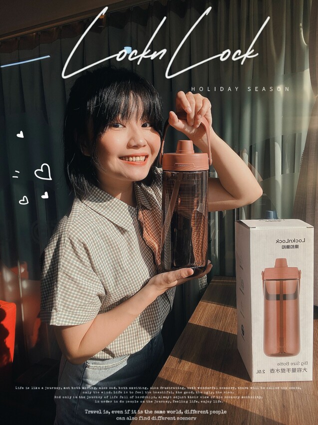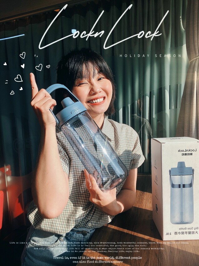 天啊!又到了一天要喝好多水的季節!你會不會跟我一樣,常常買了一個新的水壺,下定決心要好好每天喝足量水,在裝水時水壺裡都會有一種很不好聞的塑膠味,每每都要清洗好幾次才敢拿來用呢?!最近用到LocknLock樂扣樂扣的大容量手提水壺,就完全解決了這個問題,瓶身使用無毒Tritan材質,不含BPA、不易吃色卡色,全新的水壺一打開蓋子一聞,瓶身都沒有刺鼻的塑膠味外,直接拿來裝水一喝也沒有怪味,2L大容量真的可以逼自己好好喝水,特殊設計的手把,正手反手好握持外,放下來後也很貼合瓶身,除此之外,這款水壺有附贈濾茶蓋,也很適合拿來泡茶,今年夏天,讓我們好好的補充水分吧!