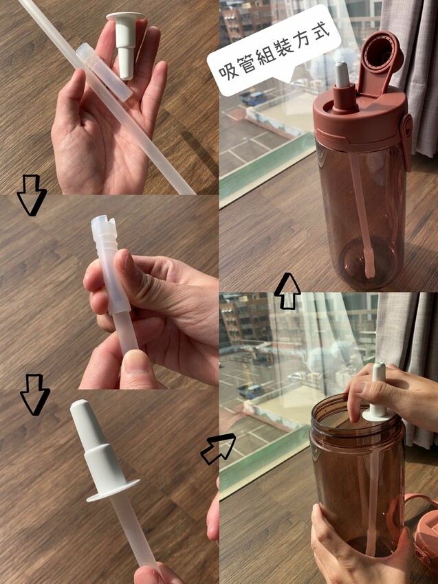 想當做喝水用的水壺時,只要把盒子裡面附贈喝水專用的吸管,組裝起來就可以了,只要照著萍姐的步驟,就可以輕鬆自己將吸管組裝完成