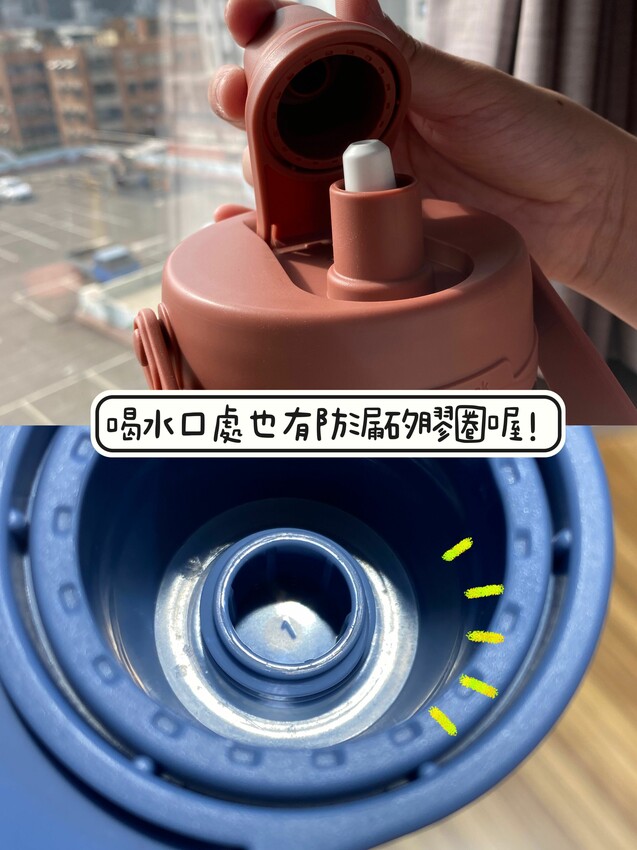 喝水口處也有防漏矽膠,只是這邊的矽膠不是可拆式的,建議拿海綿刷清潔