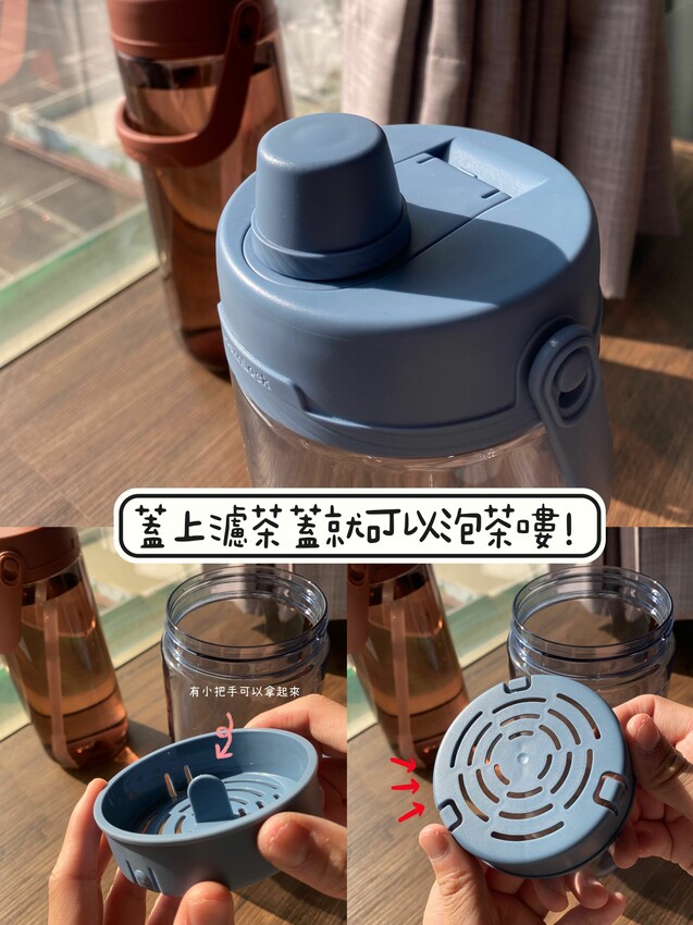 樂扣樂扣大容量水壺本身可以當作兩用水壺,打開上蓋後,你就會看到茶葉的濾蓋,要泡茶喝也挺方便的,也很適合泡冷泡茶喔!