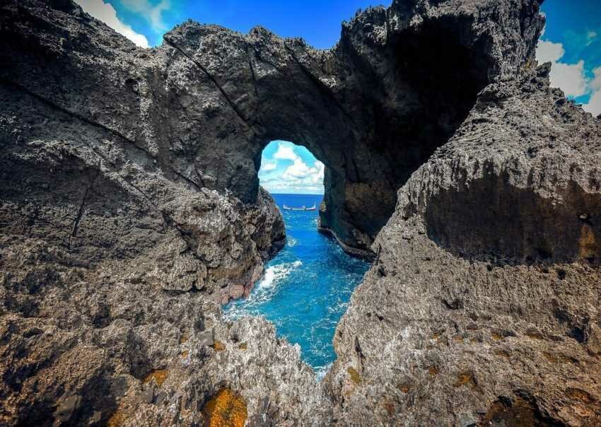 蘭嶼情人洞,是位於東清灣岬角的天然海蝕洞,經海浪拍打形成天然拱門。除了淒美愛情故事外,清澈大海、藍天和奇岩,形成超美美景。但情人洞長年都有巨浪拍打,也有危險的深潭,欣賞風景時務必要小心安全,不要太靠近岸邊。