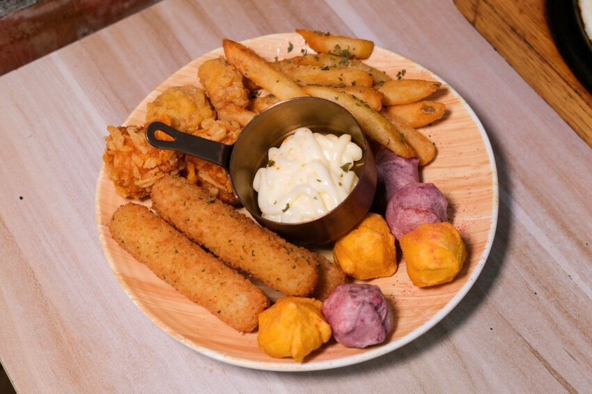 ▼隱藏版的餐點炸物綜合拼盤,一次能吃到四款不同炸物,包含起司條、爆漿熔岩蝦球、地瓜球和薯條,沾上特製塔塔醬後風味十足,很適合多人一起點來享用。