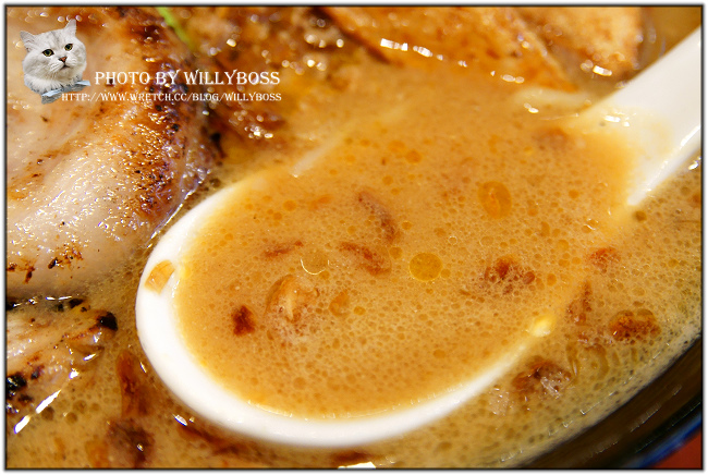 湯頭絕對是這陣子吃過那麼多家拉麵裡頭-最鹹的!!!但是鹹的很鮮很有層次,和一般印象中的味增湯是截然不同的味道,鹹中帶香,且為了與其他拉麵有區隔,使用了日本少見的紅蔥頭(網友餅乾說是洋蔥酥,等有機會再訪再跟店家確認一下)與肉燥,別有一番獨特的台味XD。