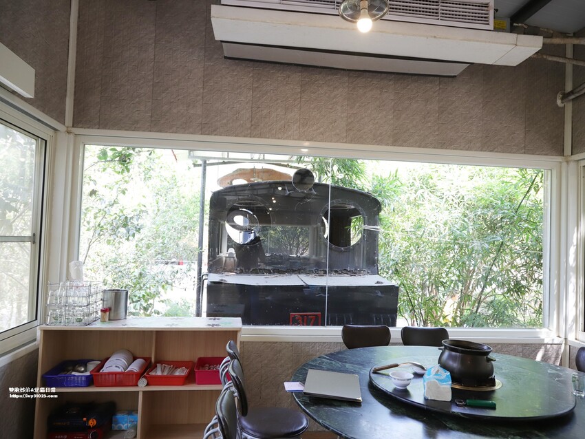 我們用餐的地方是綠野山莊很有特色的火車頭包廂,被周圍綠意盎然的植物包圍住,完全的沉浸在大自然的天然芬多精懷抱裡~~。