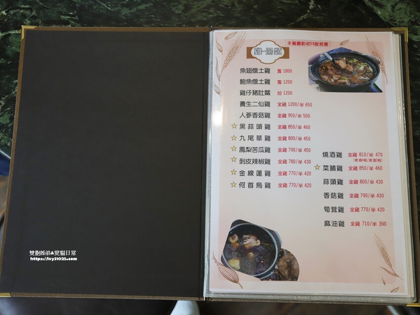 綠野山莊土雞城的菜單分類很細,讓客人可以清楚知道自己要點的東西在哪邊,或是要加點飯、麵、米粉類,都能在菜單上面找到。