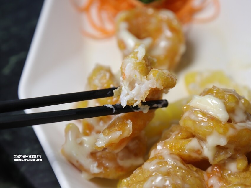 綠野山莊土雞城的鳳梨蝦球是我看過很多餐廳中最大顆的蝦球,直徑比50元硬幣大,而且吃一口蝦球,可以看到甜甜的醬料理面的蝦肉超飽滿。