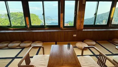 ▲從房間的拉門就能直接看到海景,可惜的是紗網都是青苔能稍微清潔一下會更好。