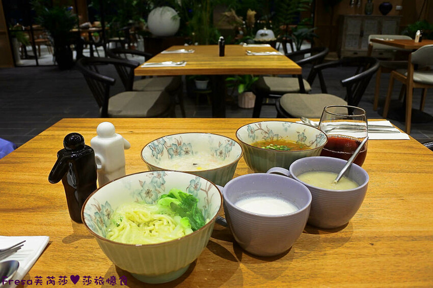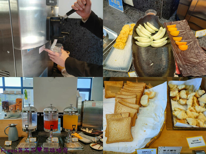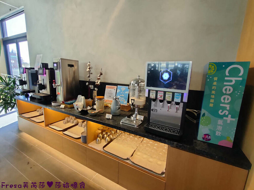 飲料有咖啡、熱茶、豆漿、牛奶、氣泡水!