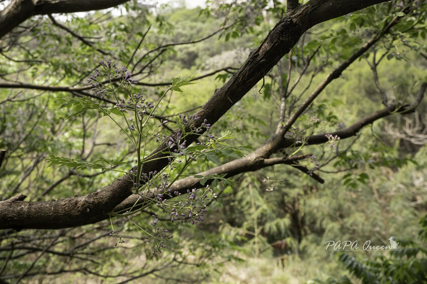 艷紅與粉紫色的在眼前交錯著!來這裡千萬別只顧著拍九重葛,苦楝花也很美的!