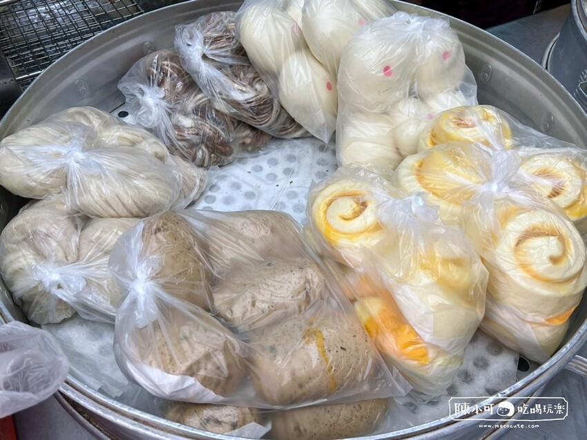 整個排隊隊伍就我買的最少,因為家裡冰箱已經快裝不下,所以只買了芋頭捲、蔥肉包、筍肉包和芝麻包四個。