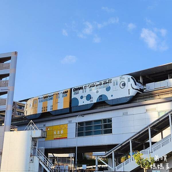 電車外觀很多種,除了寶可夢列車外,弟噗媽最愛就是自己戲稱圓圓鰻(花園鰻)外型的車廂,單軌電車圓弧造型和圓圓鰻實在有夠搭!