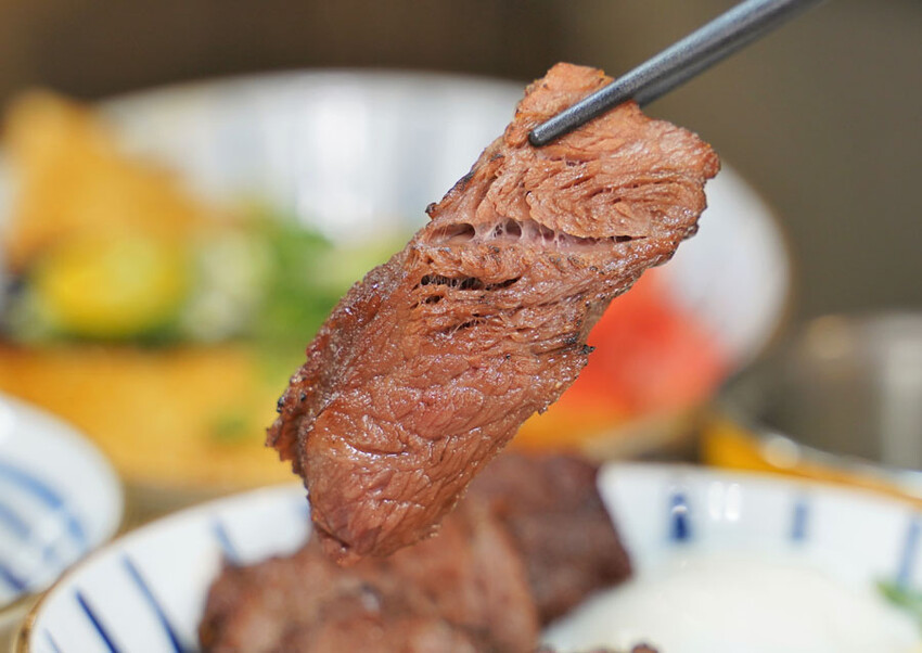 牛肉有先舒肥過,封鎖住營養、水嫩,使用炙燒方式帶有6~7分熟