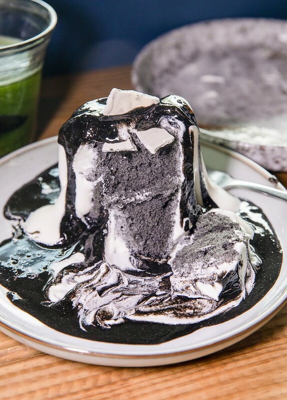 九鬼芝麻戚風蛋糕160元,如果剛剛的焦糖海鹽是90分的話,那這個口味我可以給120分,大概是我吃過用九鬼芝麻做的蛋糕中的最愛,那濃厚的芝麻香,混得略為膩口的鮮奶油閃閃發光,一整個好吃得亂八九糟,這一塊我居然一口抹茶也沒配,就掃得乾乾淨淨,就差沒舔那盤下剩下的芝麻醬...