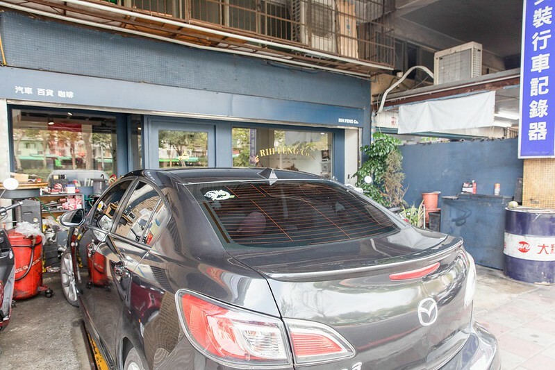 雖然有心理準備,但還是走過、錯過了兩次才發現...門口修車廠+咖啡廳的logo蠻可愛的。