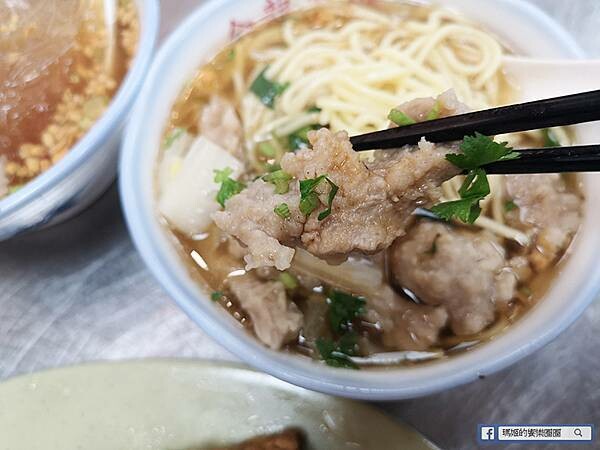 而肉焿吃起來的口感的紮實的,它的肉很澎派飽滿,外層裹薄薄的魚漿,而非有的肉焿是魚漿多過於豬肉的比例,吃起來就是不一樣。
