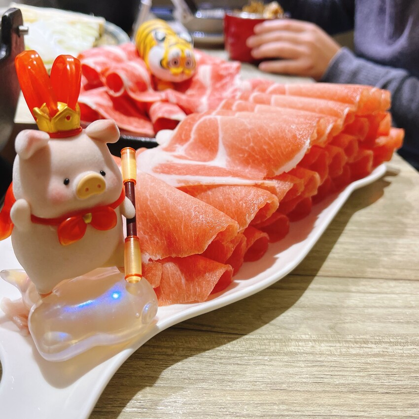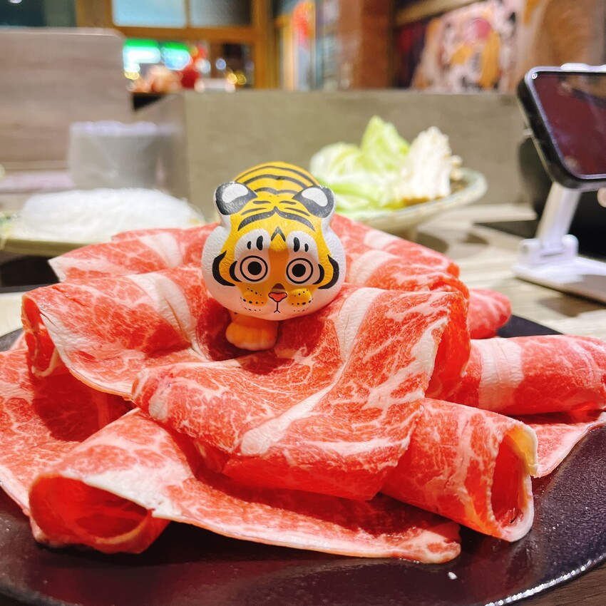 牛肉則搭配老虎🐯 (聽說是因為老闆沒找到滿意的小牛公仔,所以改換成老虎)
