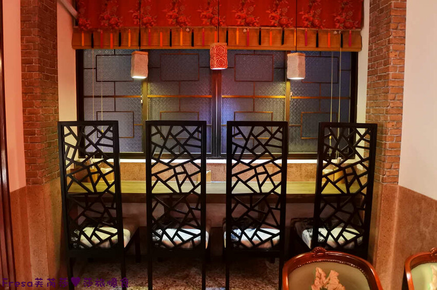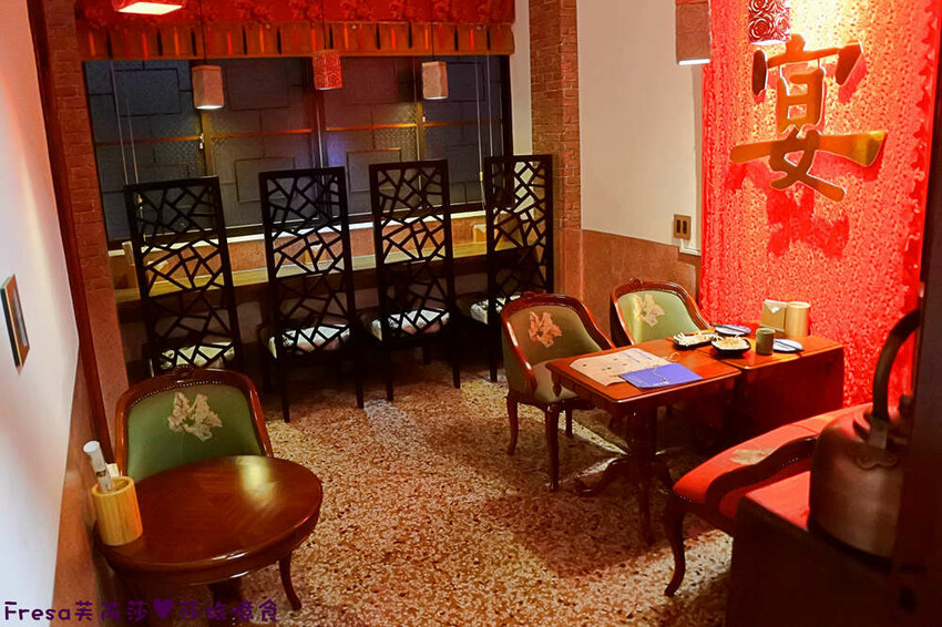整面紅宴燈飾,傳統座椅印入眼簾.