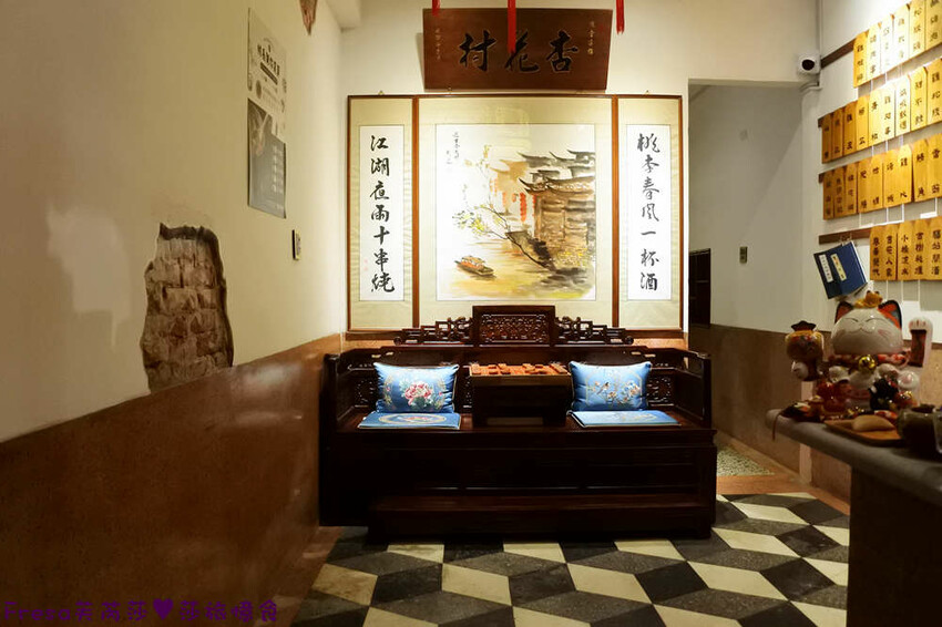 台南餐酒館河樂廣場附近美食「杏花村」夜晚微醺巷弄中式老屋氛圍酒吧.盤器花飾精緻超美