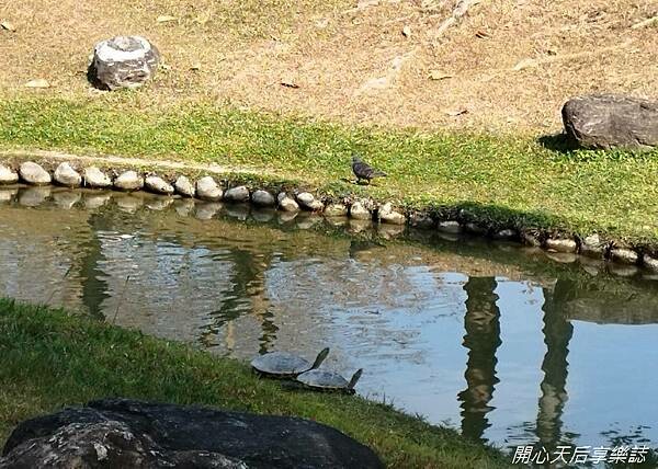 不少人帶小小孩來玩耍散步,園區氛圍十分輕鬆愜意,連烏龜也在池邊自在地日光浴