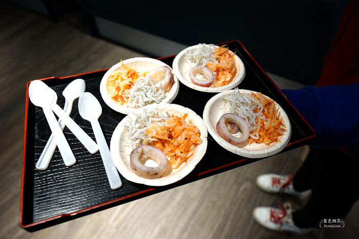 來來來,依序來試吃這盤有魩仔魚、櫻花蝦、小卷…三種口味慢慢感覺它的不同