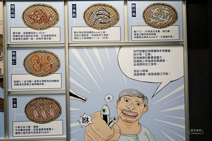 溪和水產觀光工廠(門票全額折抵消費與DIY)水產漫畫主題超好拍,漁撈廚房好吸睛,生米煮成熟飯&汆燙&海鮮壓片DIY很有趣,水產市集現炒美味丁香魚免費試吃,名古屋海鮮仙貝一定要買|宜蘭五結蘇澳室內景點
