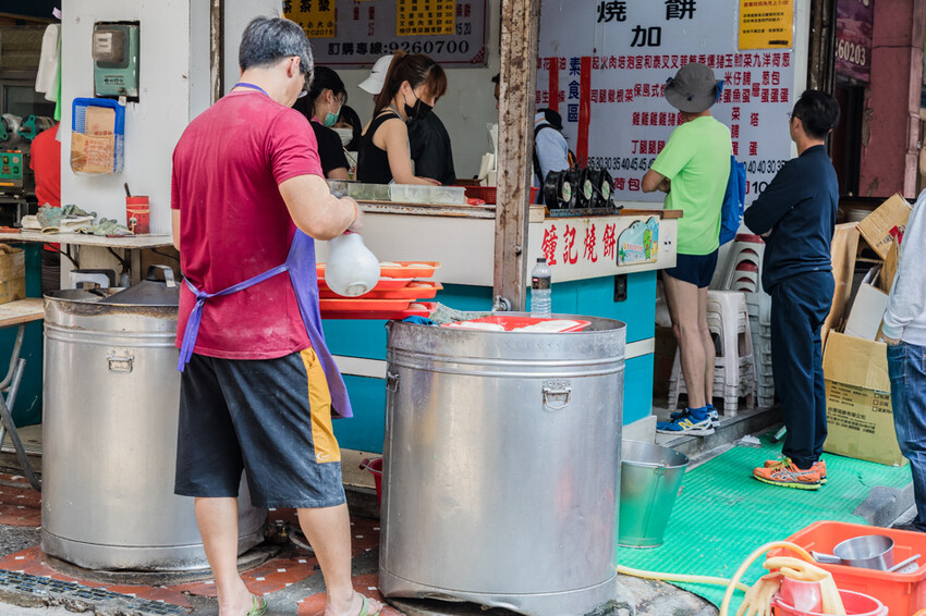 鐘記燒餅的餅皮是比較厚的,可以搭配各種食材,例如基本的蔥蛋、荷包蛋,其他還有比較特別的例如:宮保雞丁、和風雞腿等等,有二十幾種口味選擇,每日現做燒餅是從缸爐烘烤出來的,所以還會帶著一點碳香,滿不錯吃的。