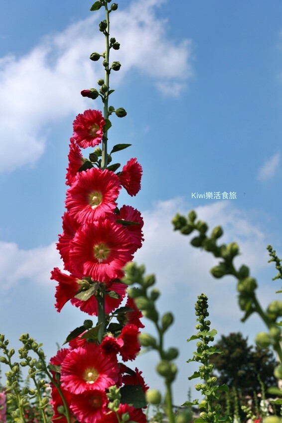 蜀葵花又稱一丈紅,可長至1-2公尺之高,一株株高聳繽紛的蜀葵花太漂亮,讓我們沈浸在其中呀!