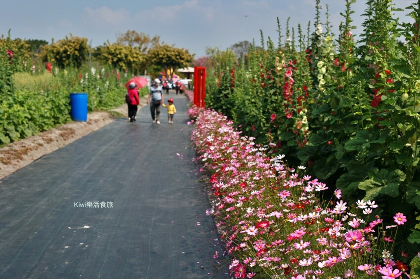 在員林蜀葵花逛花海時,不用擔心下雨天,因為這地面可都鋪好鋪滿,不容易踩到泥濘,真的很貼心呢!