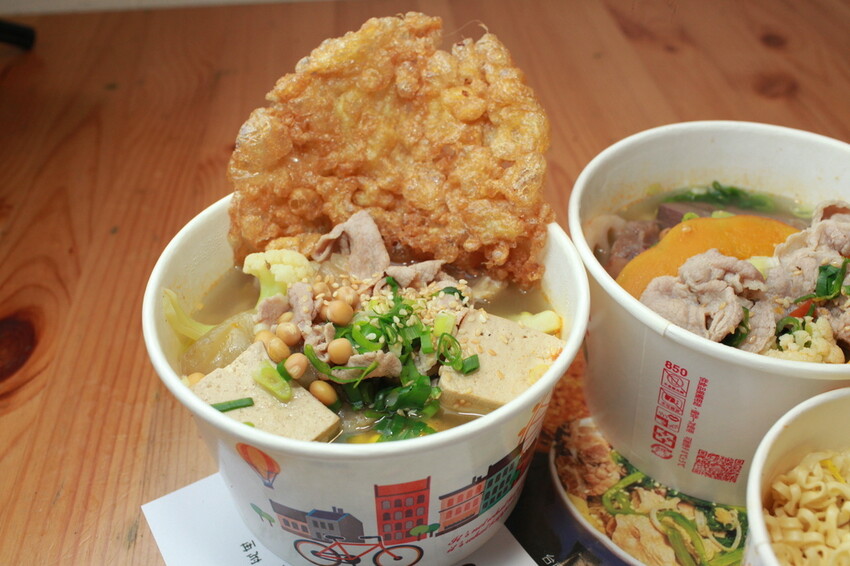 這碗冒菜有選擇蒸煮麵來搭配享用。