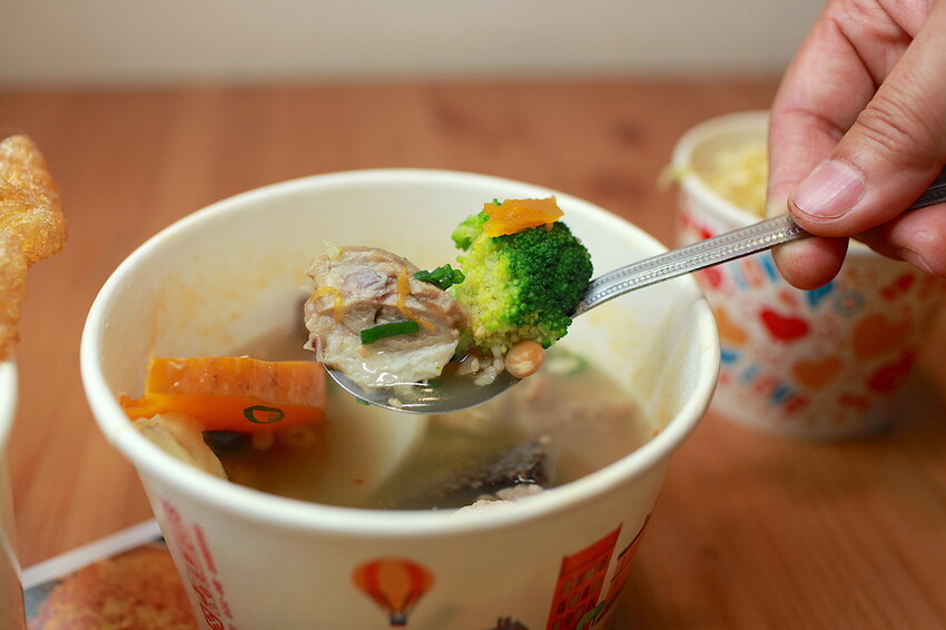 這蛋酥稍微浸泡湯頭有點濕潤,蛋酥酥脆蛋香濃香非常好吃