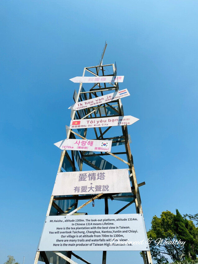 享受無邊際的綠浪清新;在這山頭打造一座觀景台,標高1314公尺,形成了一生一世的浪漫愛情史