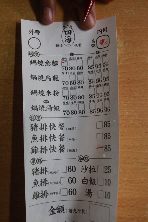 這張是店家點菜單供顧客直接畫選,這張菜單鍋燒有原味、泡菜級麻辣等可供選擇。