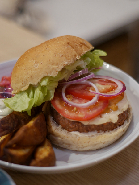 如果不想吃麩質的朋友,可以選擇用綠皺生菜代替漢堡麵包