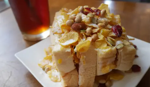 花生醬的甜及顆粒,讓厚片口感非常有層次。