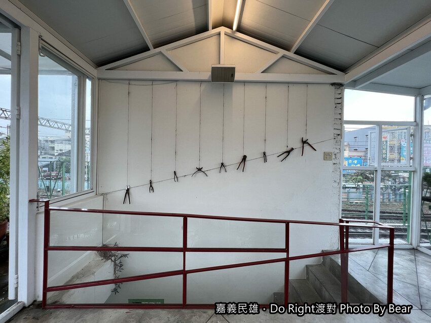 靠近欄桿,並往左手邊望去,就能看到民雄火車站的月台呢