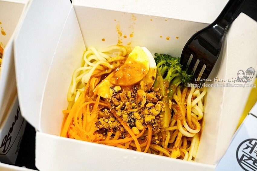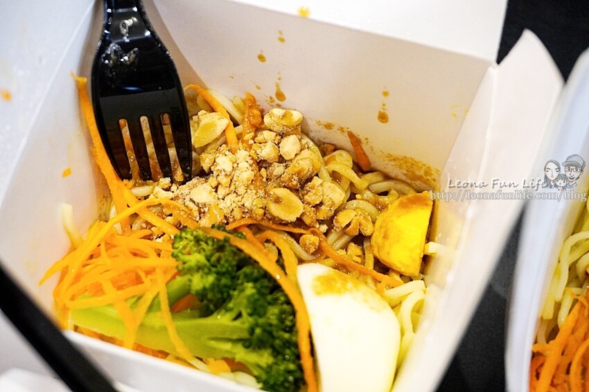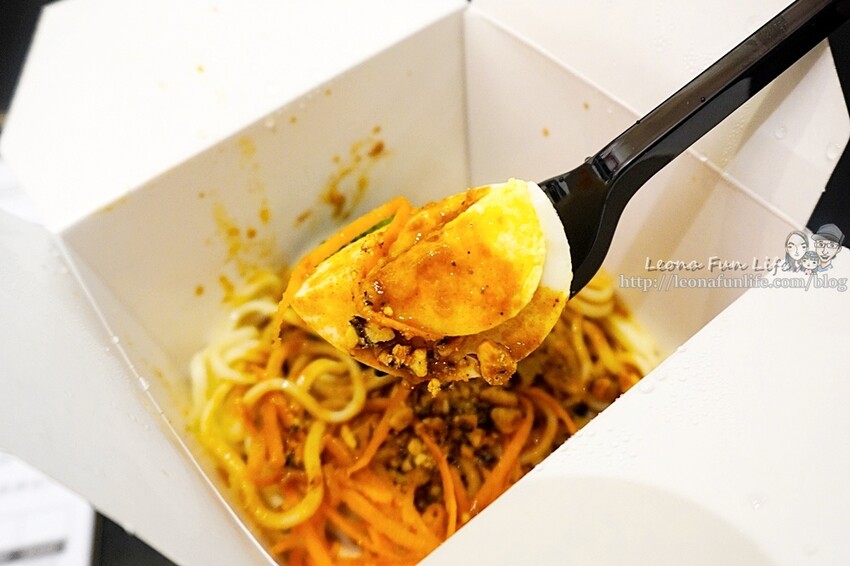 可以看到冷麵中有紅蘿蔔絲、花椰菜、1/4水煮蛋,