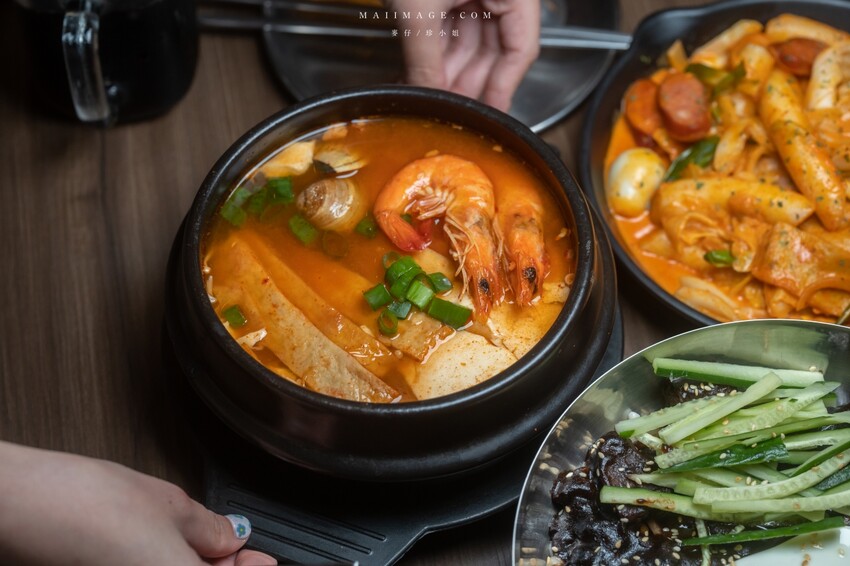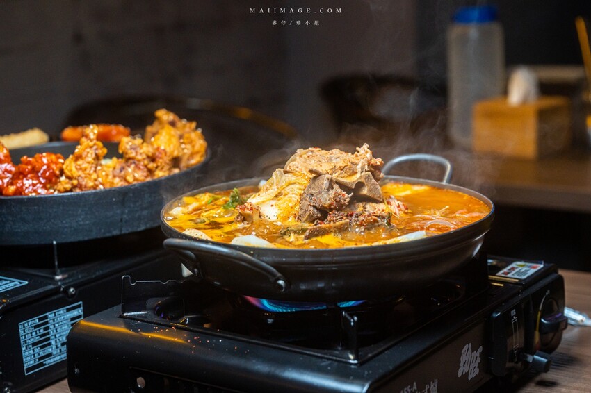 吃這個炸雞就不要怕熱量破表,因為他太邪惡所以一定要趕快把它消滅。一次有兩種口味的去骨炸雞,旁邊還有韓式年糕。套餐裡還有主食跟配菜、甜點跟飲料可以選擇,如果人多推薦可以點個炸雞套餐再搭配其他的料理。我們這天選了韓式炸醬麵、辣海鮮豆腐湯、冰棒跟飲料。這炸雞套餐大概就夠3人來分食,份量很足。