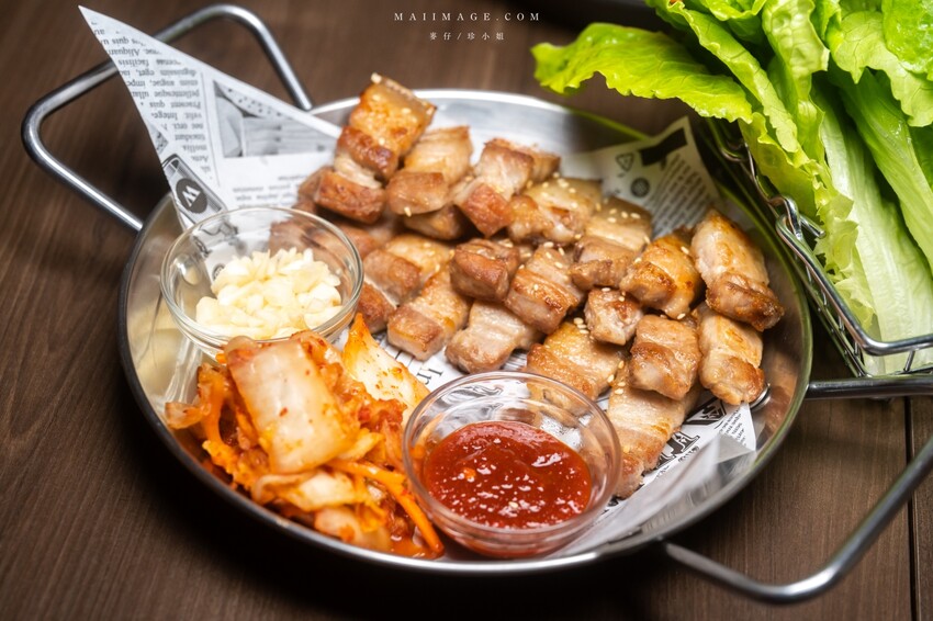 來吃韓式料理怎麼可以錯過韓式烤五花肉!他們家的烤豬五花表現也很有亮點。