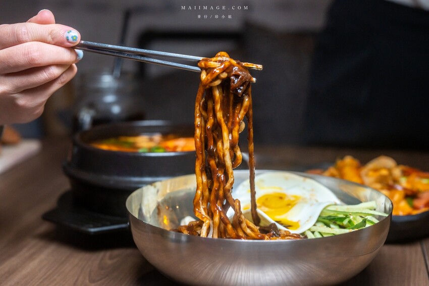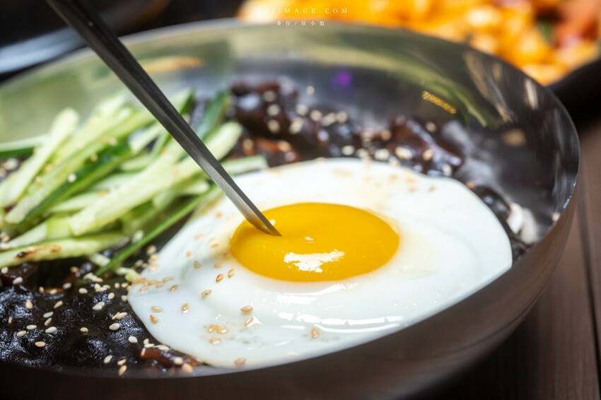 我很喜歡吃韓式炸醬麵,黑嚕嚕的炸醬看起來不討喜但卻魅力十足,上面的半熟蛋煎得真美。