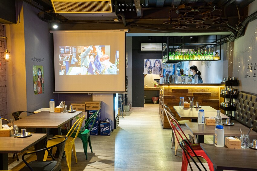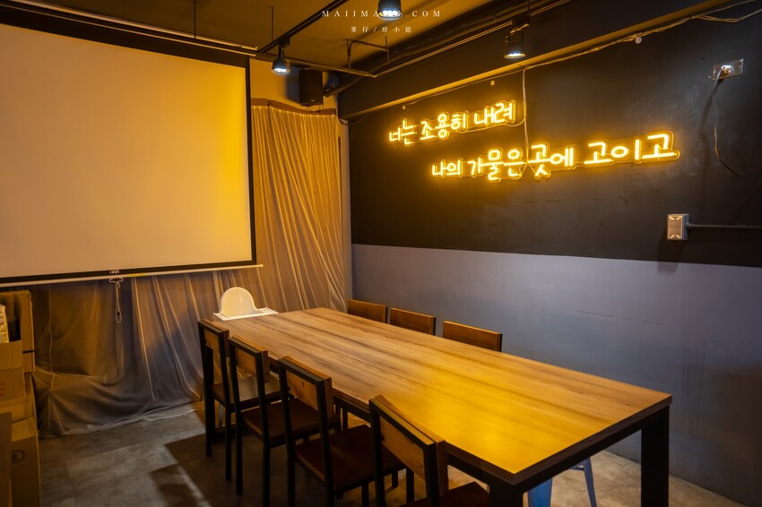 二樓是帶點低調昏暗的酒吧風格,用餐區的座位選擇又更多。旁邊還有投影布幕很適合多人簡報開會或是包場聚餐。