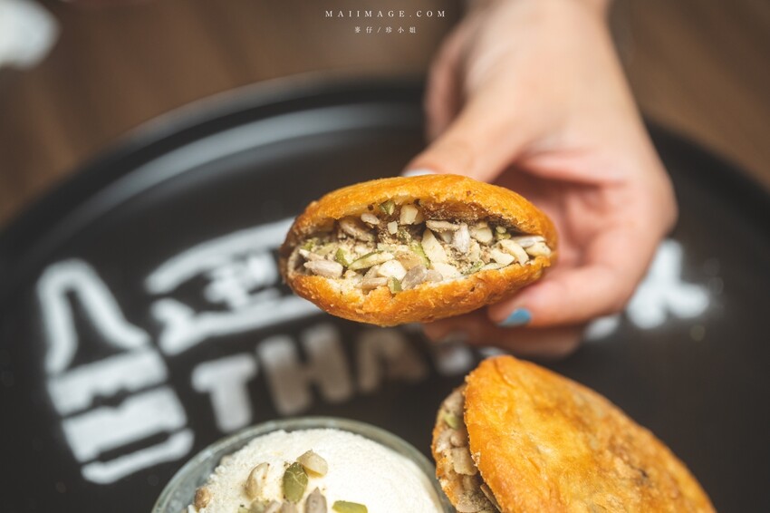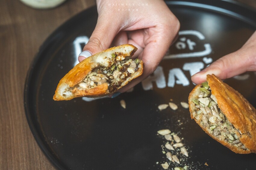 第一次吃到這樣的韓式糖餅,外皮酥脆,裡面還包著滿滿的葵瓜子、南瓜子、碎花生,相當特別的一道甜點。