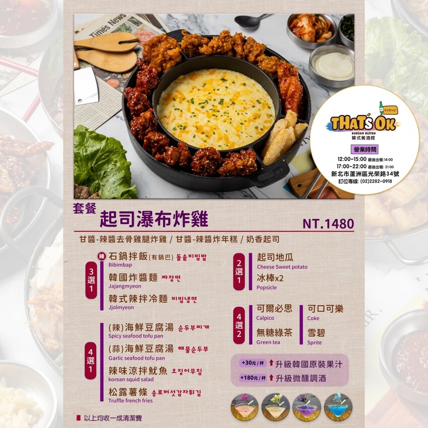 That’s Ok餐酒館~起司瀑布炸雞1480元(套餐)