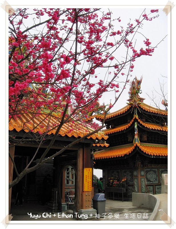 車子繼續開,終於到了最高處可以停車的停車場,最後兩個位子,果然這邊是過年前的熱點之一。只剩下一百多階要爬(Ethan 算了算大約是197~203階上下,左右不同數),走完就可以到正殿了!(階梯旁的櫻花跟茶花開得正茂盛)