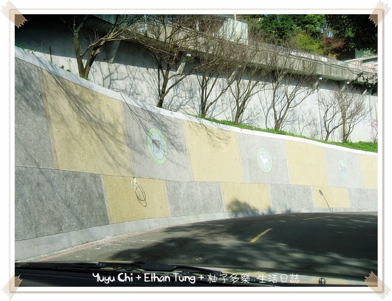 車道旁邊的牆壁上面貼有十二生肖的圖案,當然神奇的大型恐龍雕像更是讓人讚嘆,古今中外時空交錯,好神奇說!