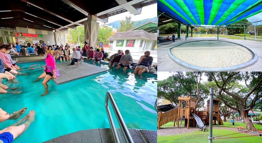 復興公園泡腳池(免門票)北投三大免費「溫泉泡腳池」離新北投捷運站最近走路5分鐘到,世界少有的「青磺泉」還有好玩溜滑梯