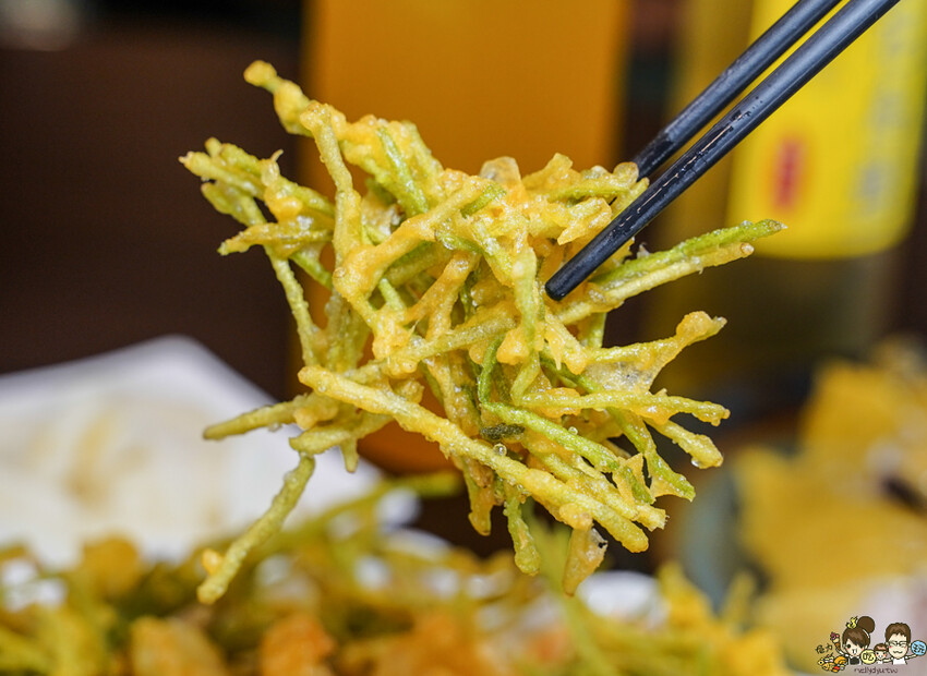 使用當令時蔬搭配美濃盛產野蓮製作的天婦羅