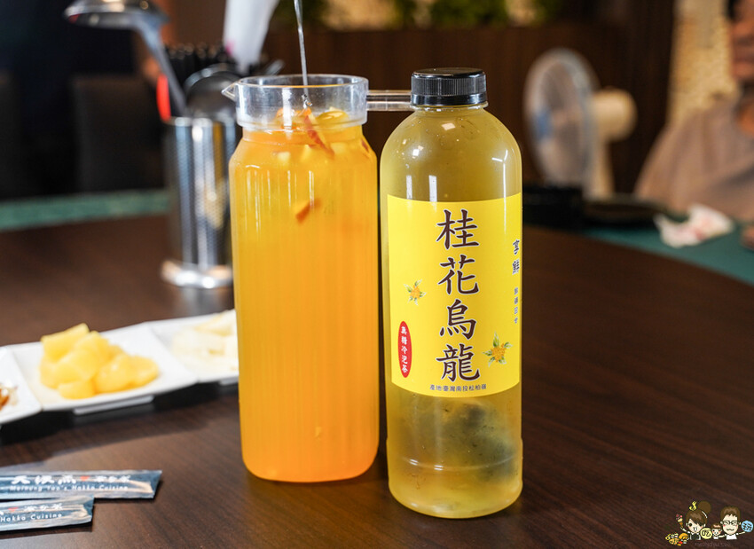 桂花烏龍也是選用高雄在地黃蝶翠谷小農製作的冷泡茶,很順口回甘解膩